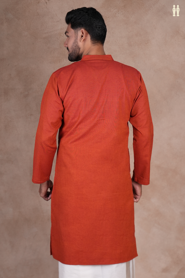 Chinese Collar Plain Orange Cotton Long Kurta