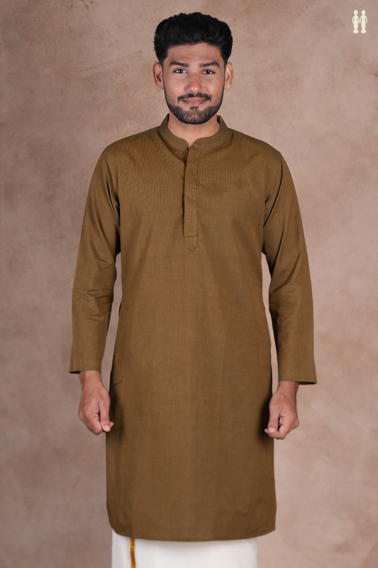 Chinese Collar Plain Peanut Brown Cotton Long Kurta