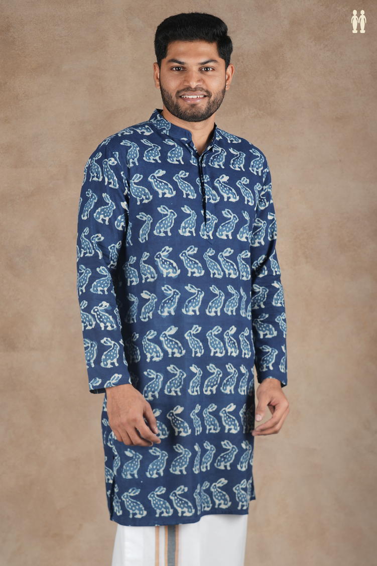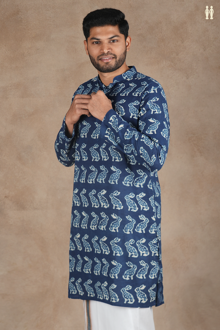 Elevate your everyday wardrobe with this sophisticated blue cotton long kurta, featuring a distinctive Chinese collar that adds contemporary flair to a timeless silhouette. The intricate printed design brings visual depth and character, making it versatile enough for casual outings or relaxed gatherings. Crafted from breathable cotton, this kurta ensures comfort throughout the day while maintaining its refined appearance. The extended length provides an elegant drape, perfect for pairing with traditional or modern bottoms. A wardrobe essential that seamlessly blends cultural heritage with modern sensibility.
