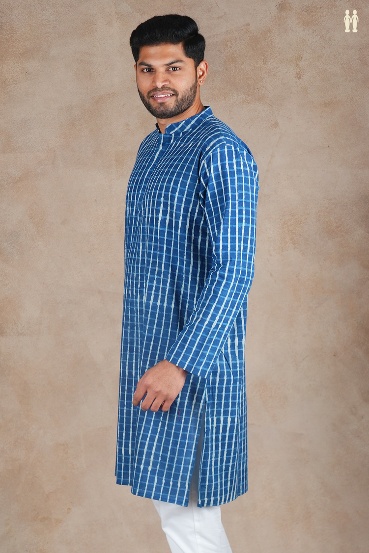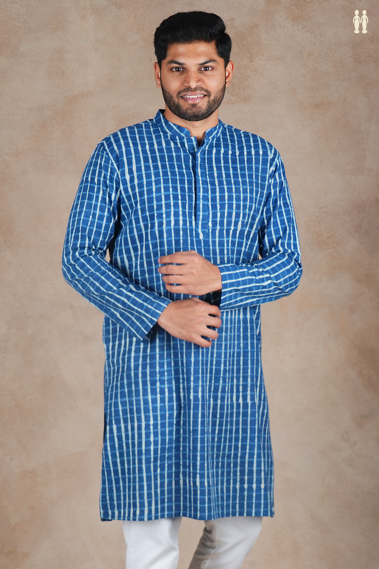 Elevate your everyday wardrobe with this sophisticated blue cotton kurta, featuring a distinctive chinese collar that adds contemporary flair to a timeless silhouette. The intricate printed design brings visual depth and character, while the premium cotton fabric ensures breathable comfort throughout the day. Perfect for casual gatherings or relaxed office settings, this long kurta seamlessly blends traditional craftsmanship with modern aesthetics. A versatile piece that pairs effortlessly with traditional bottoms or contemporary accessories for an understated yet refined look.