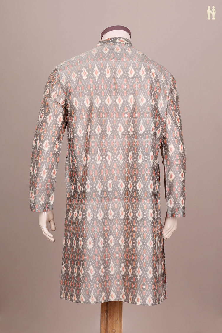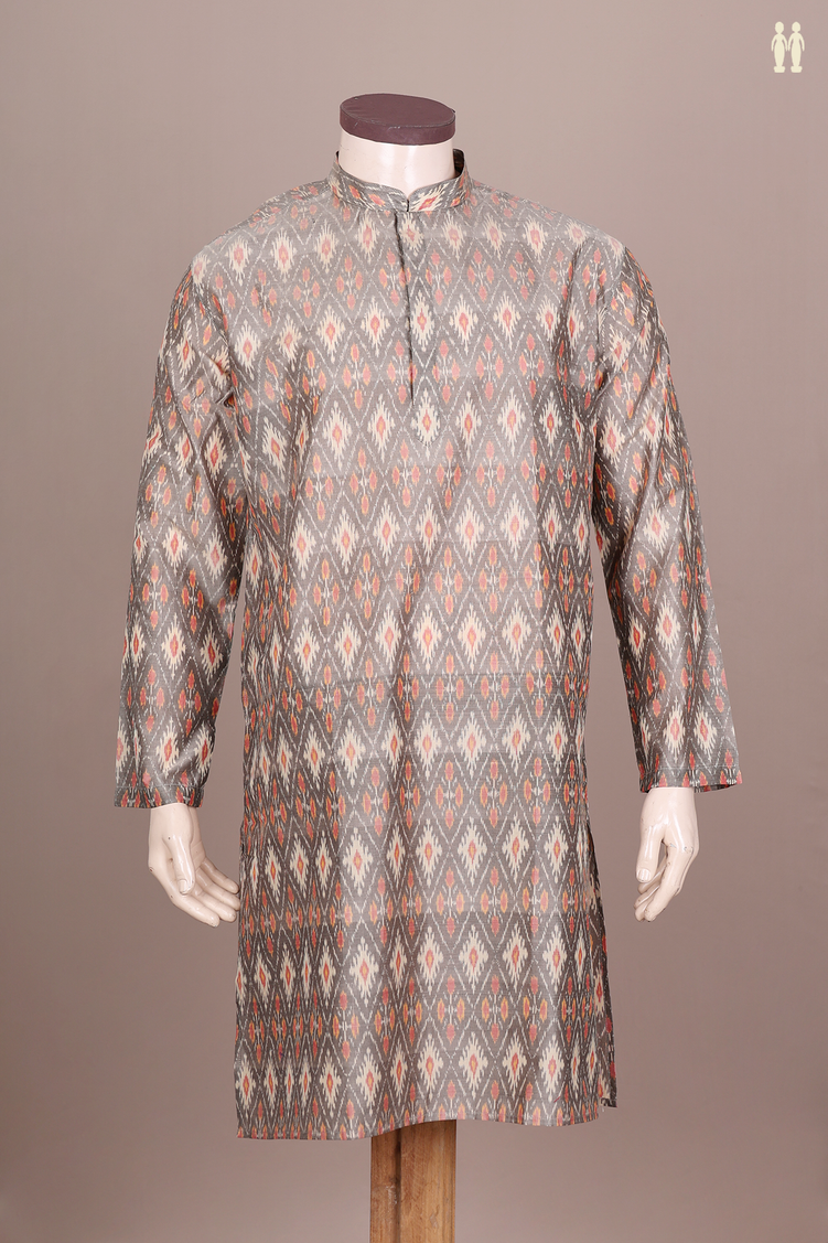 Chinese Collar Printed Design Brown Silk Cotton Long Kurta