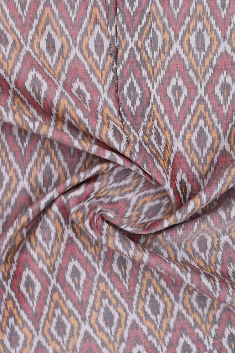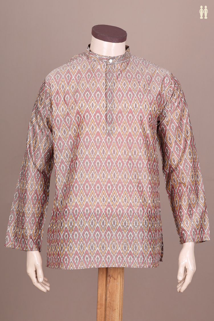 Chinese Collar Printed Design Brown Silk Cotton Short Kurta