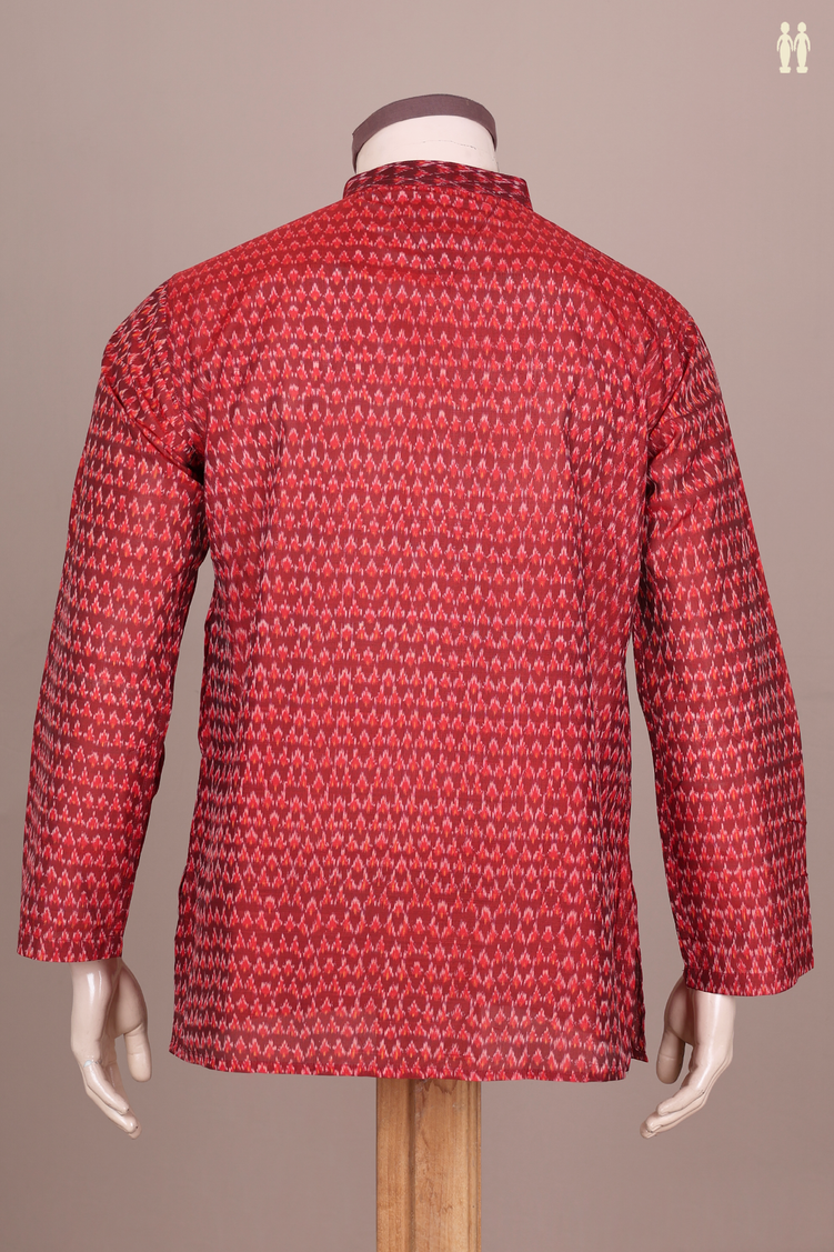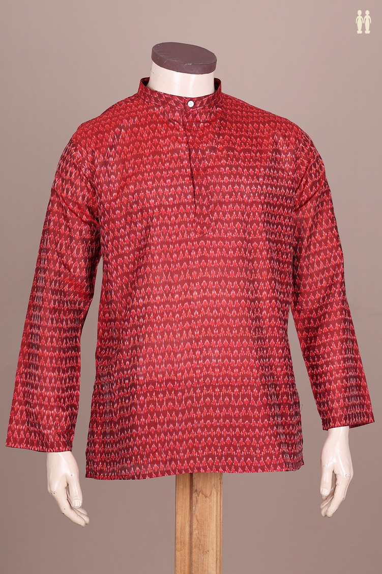 Chinese Collar Printed Design Red Silk Cotton Short Kurta