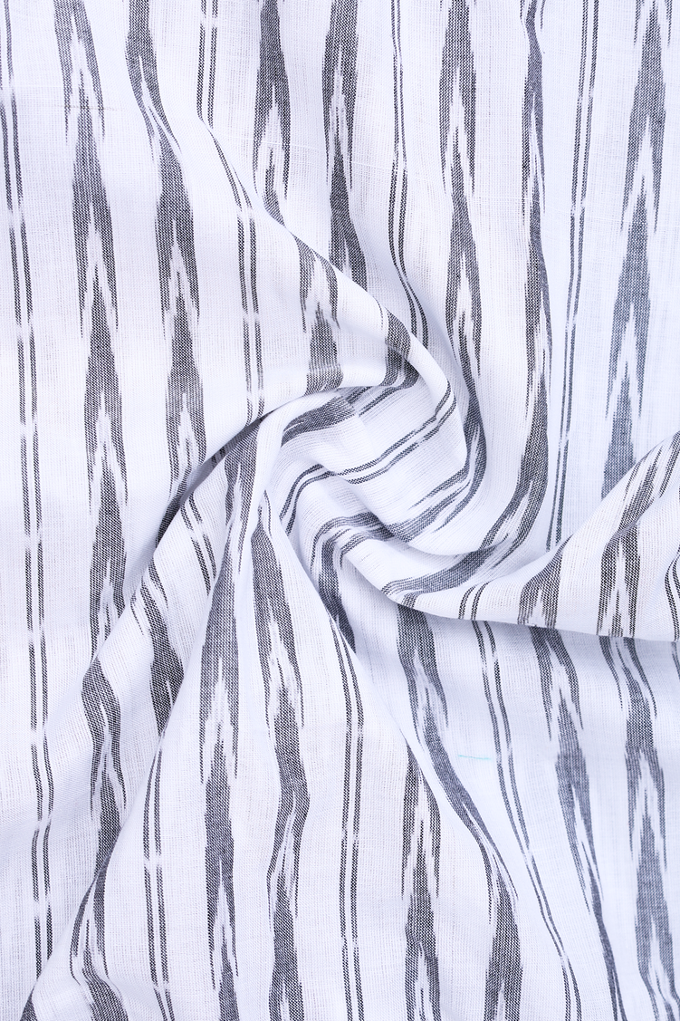 Chinese Collar Printed Design White Ikat Cotton Short Kurta