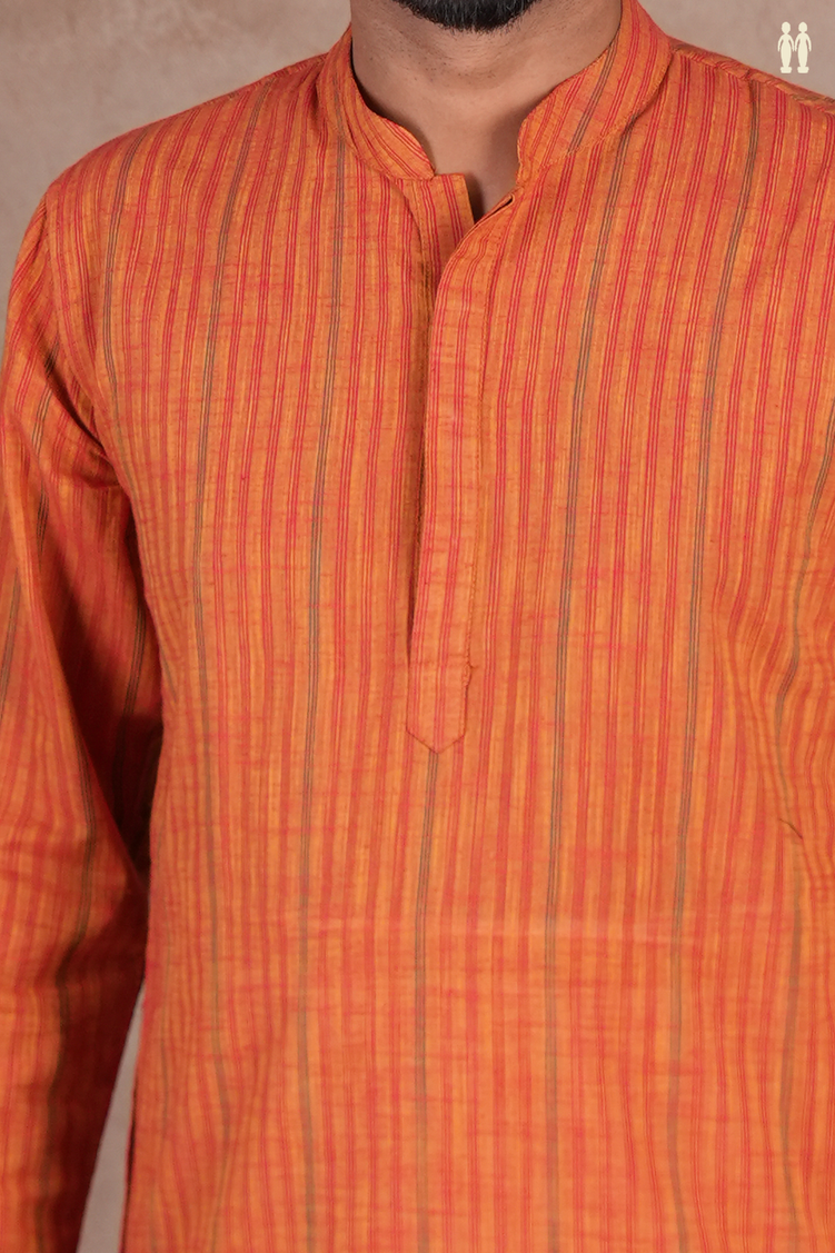 Chinese Collar Stripes Design Spiced Orange Cotton Long Kurt