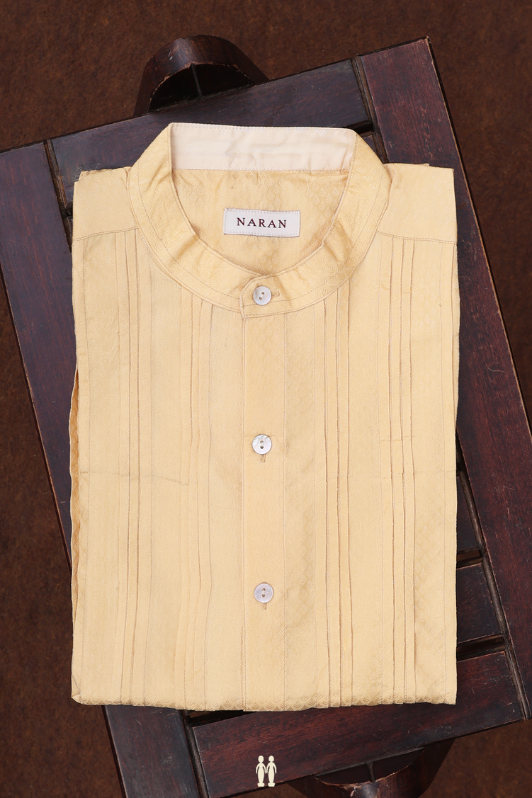 Introducing our exquisite chinese collar threadwork design yellow silk shirt. Crafted from luxurious silk, this shirt features intricate threadwork and a bold Chinese collar, making it a true statement piece. Elevate your wardrobe and add a touch of sophistication with this exclusive shirt.