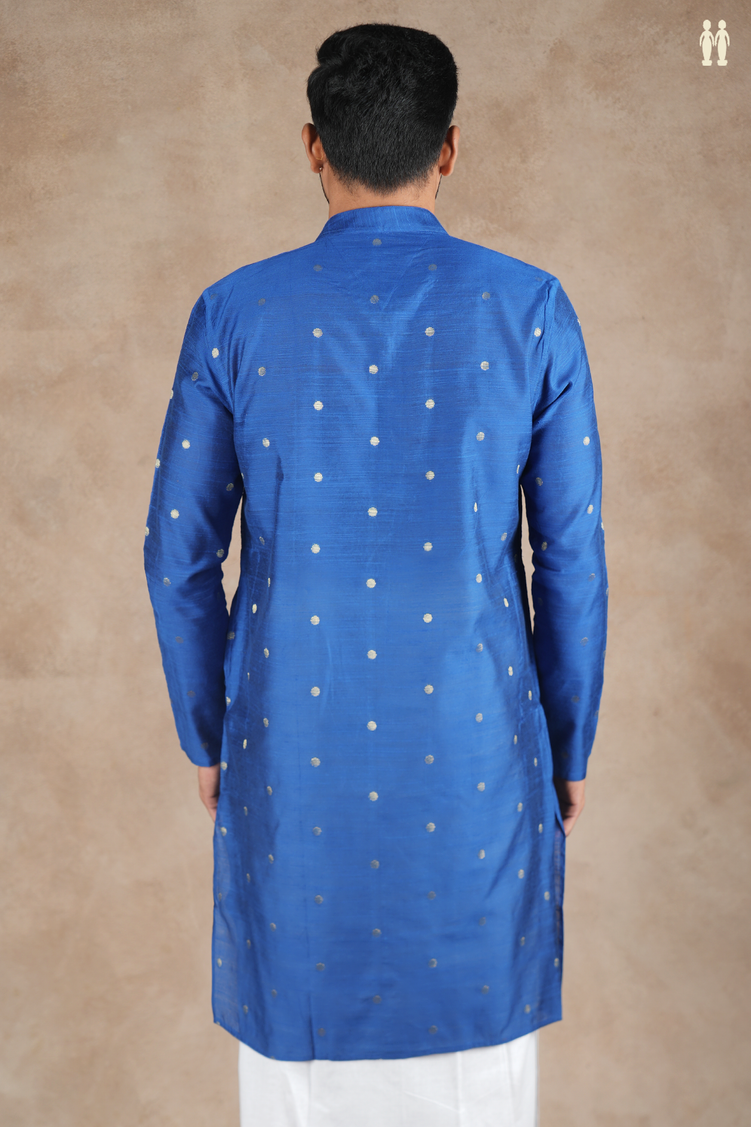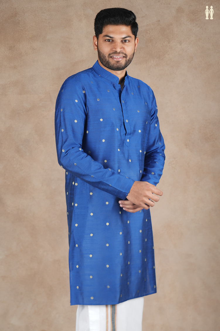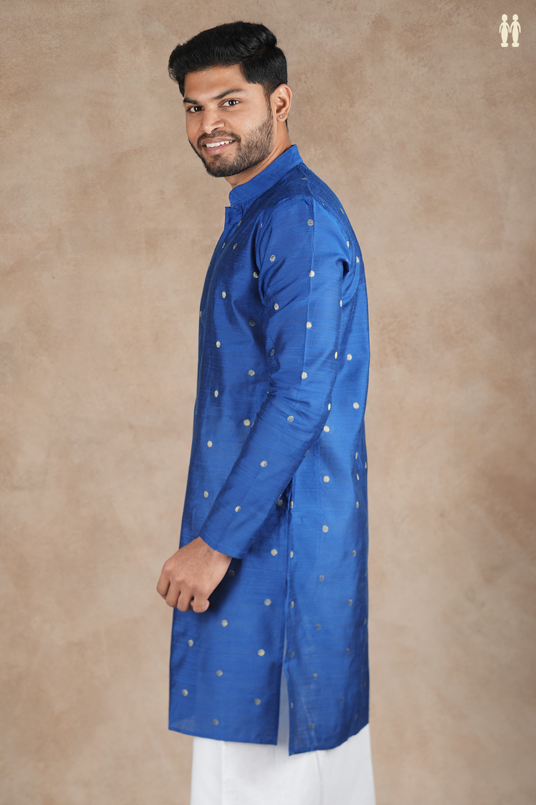 Chinese Collar Zari Buttas Royal Blue Raw Silk Long Kurta