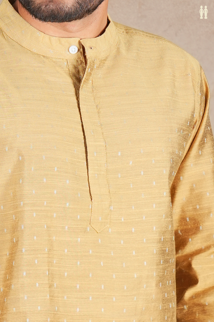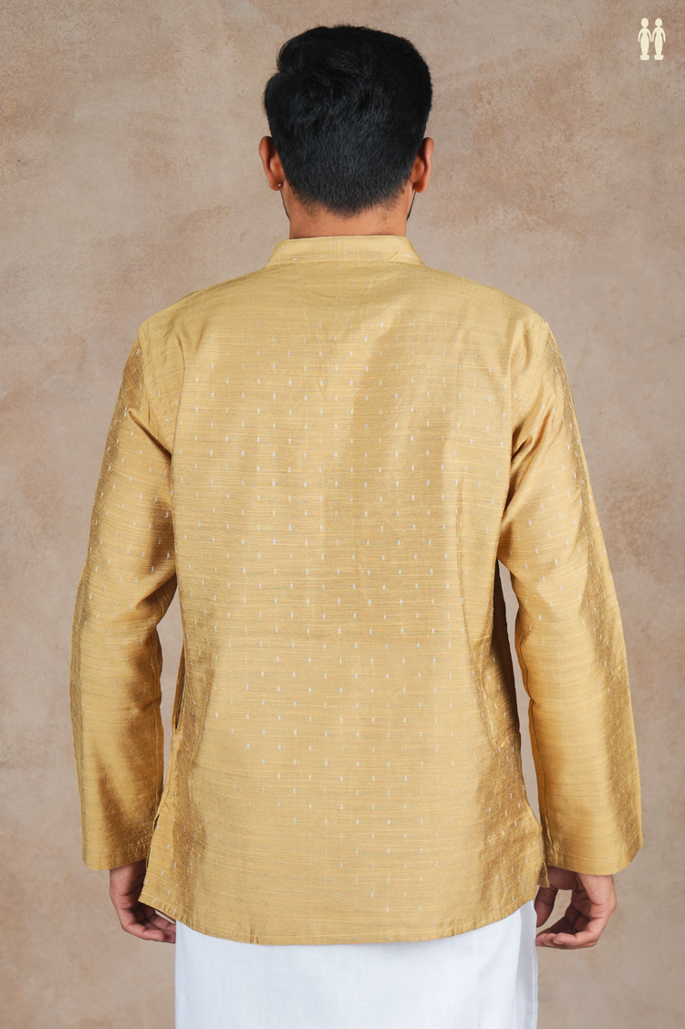 Chinese Collar Zari Buttis Brown Raw Silk Short Kurta