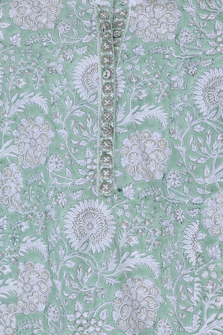 Chinese Neck Floral Design Green Jaipur Cotton Salwar Set