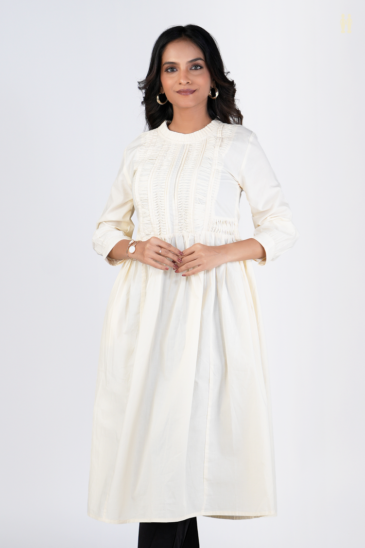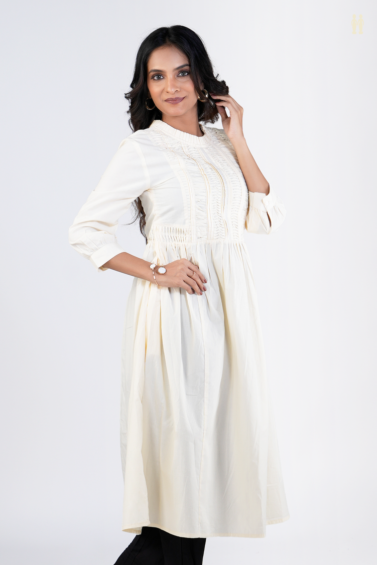 This chinese neck beige kurta is crafted from premium cotton, offering a breathable and comfortable fit. Its plain design enhances understated elegance, making it a versatile piece for both casual and formal occasions. The long silhouette and refined cut provide a graceful presence, perfect for those who appreciate subtle sophistication in their wardrobe.