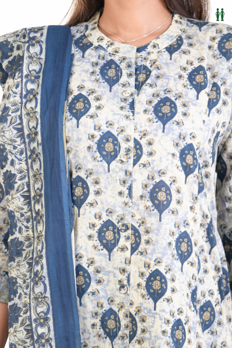 Chinese Neck Printed Design Beige Cotton Salwar Set