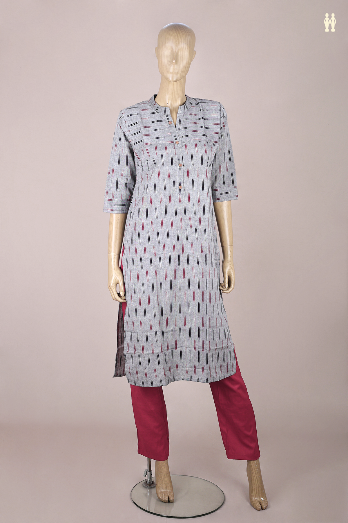 Elevate your ethnic wardrobe with this chinese neck printed design grey cotton salwar set. Crafted from breathable cotton, it offers comfort and elegance for daily wear or festive occasions. The subtle grey shade paired with intricate neck prints adds a refined touch, making it a versatile choice for a sophisticated look.
