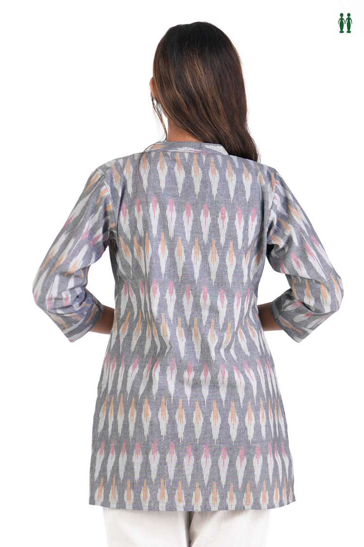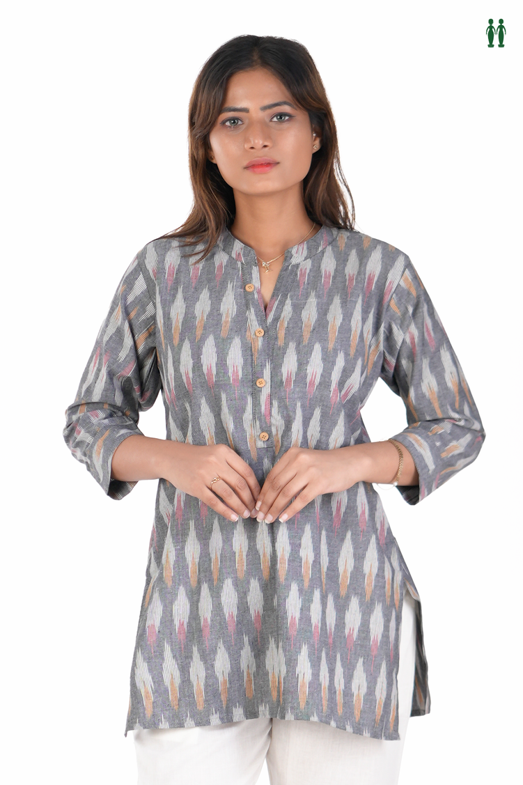 Elevate your everyday wardrobe with this refined grey cotton top, featuring an elegant chinese neck design and intricate printed detailing. Crafted from breathable, high-quality cotton, this short top offers both comfort and style for casual outings or relaxed gatherings. The distinctive neckline adds a touch of cultural sophistication, while the thoughtfully placed print creates visual interest without overwhelming the piece.
