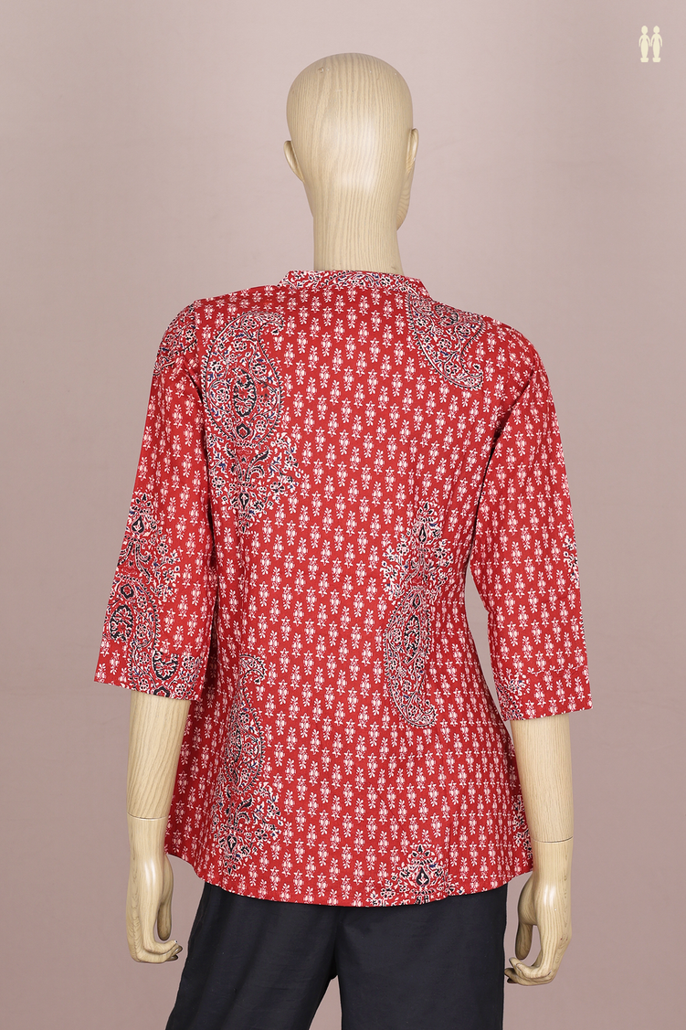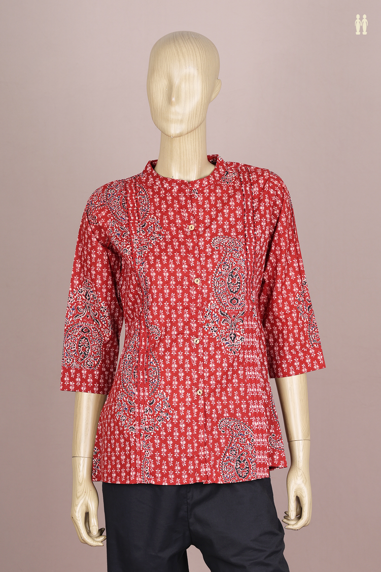This elegant red cotton short top features a refined chinese neck design with delicate printed patterns, blending tradition with contemporary style. Crafted from breathable cotton, it offers comfort and effortless sophistication, perfect for elevating your everyday wardrobe with a subtle cultural touch.