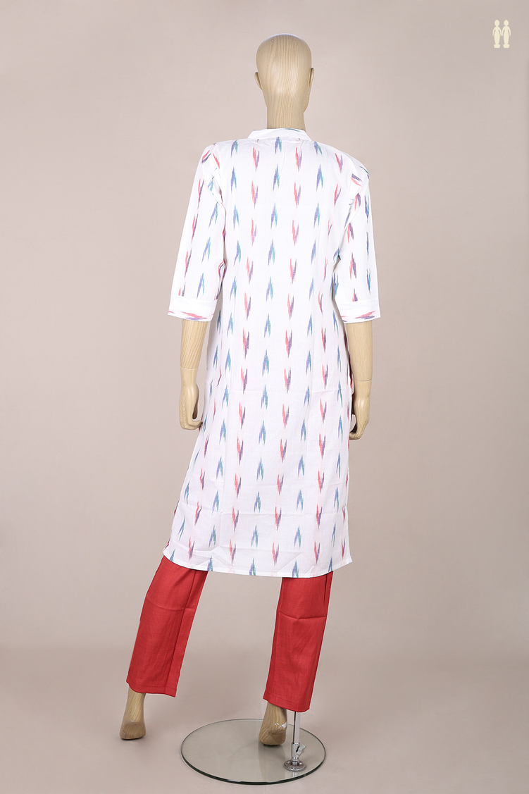 Elevate your ethnic wardrobe with this chinese neck printed design white cotton salwar set. Crafted from breathable cotton, it offers comfort and elegance for everyday wear or special occasions. The subtle printed design around the neckline adds a refined touch, making it a versatile choice for a sophisticated look.