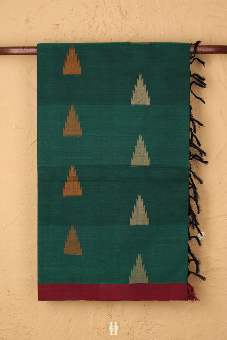 Coimbatore Cotton Saree Forest Green With Threadwork Motifs