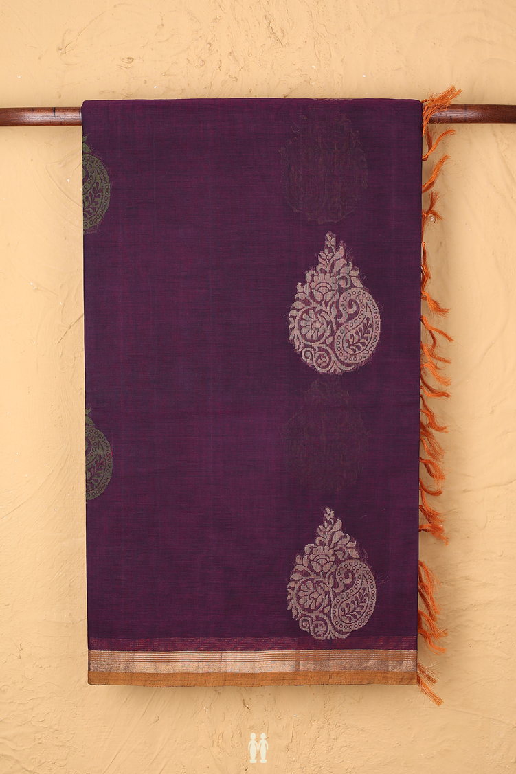 Coimbatore Cotton Saree Grape Purple With Threadwork Motifs