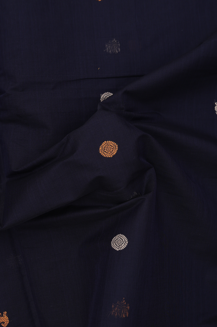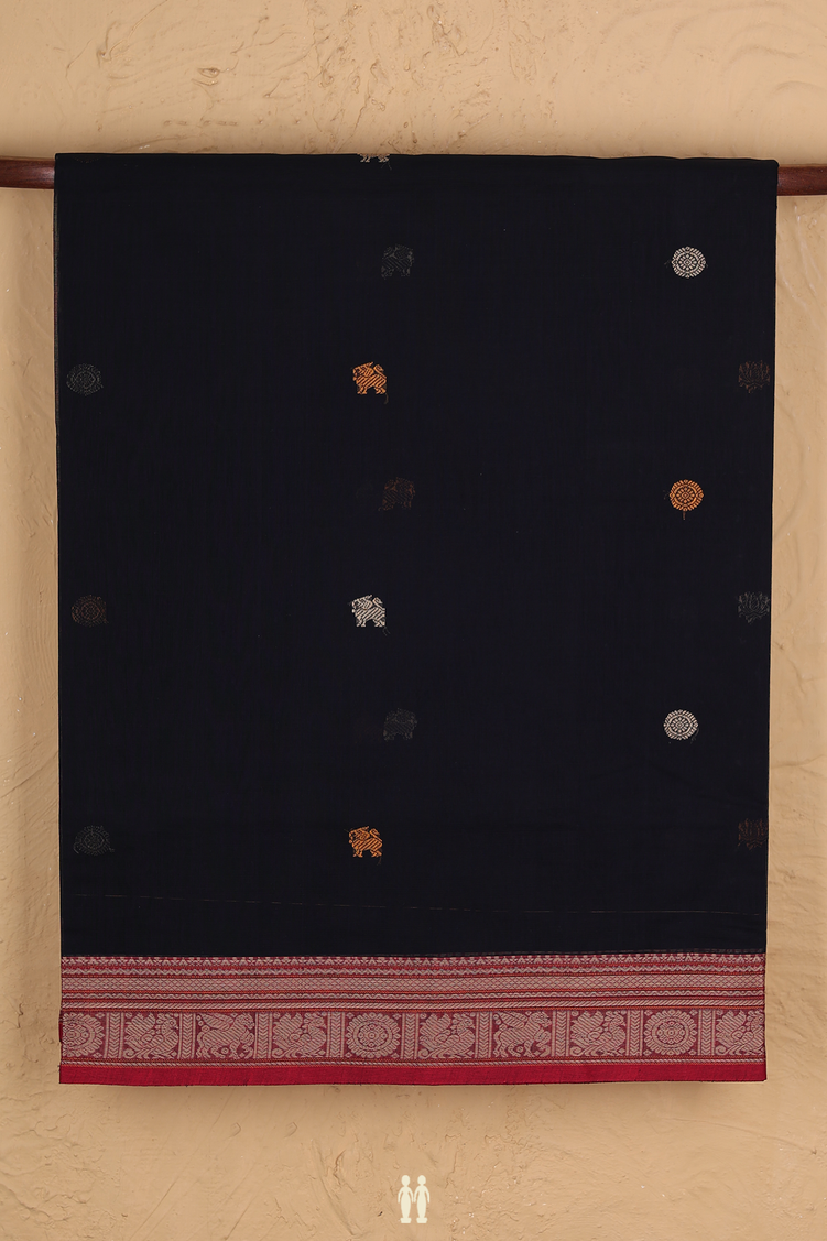 Coimbatore Cotton Saree In Black With Threadwork Buttas