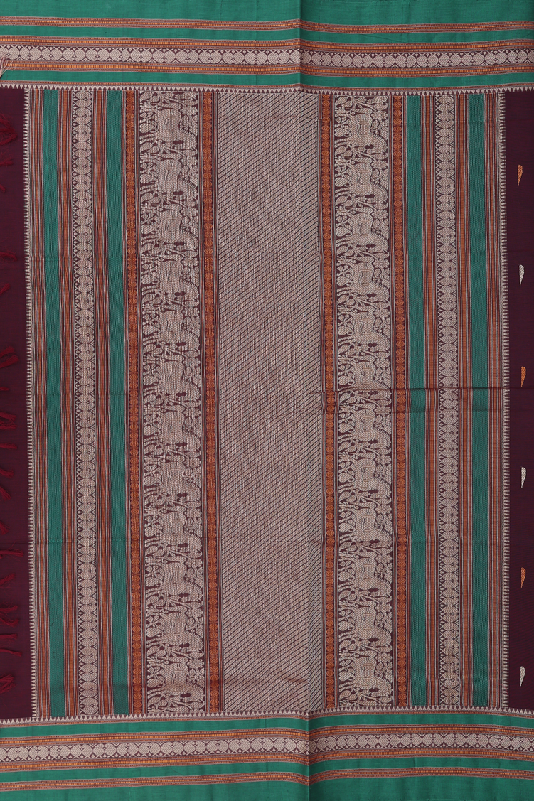 Coimbatore Cotton Saree In Coffee Brown With Threadwork Buttas