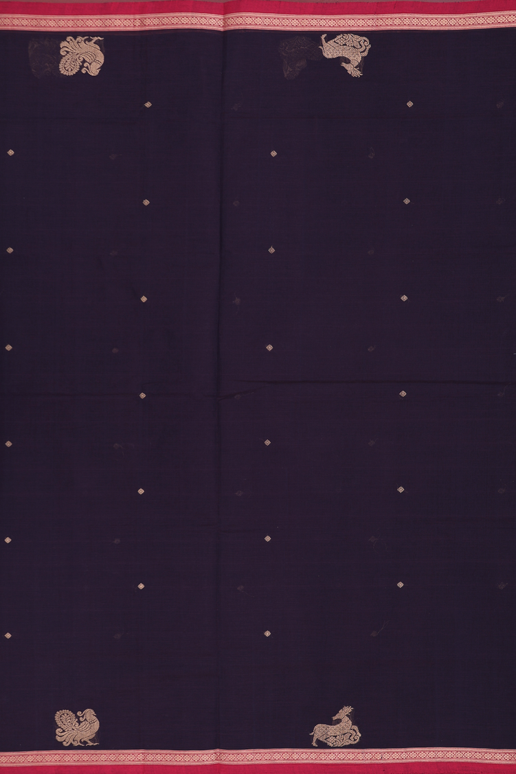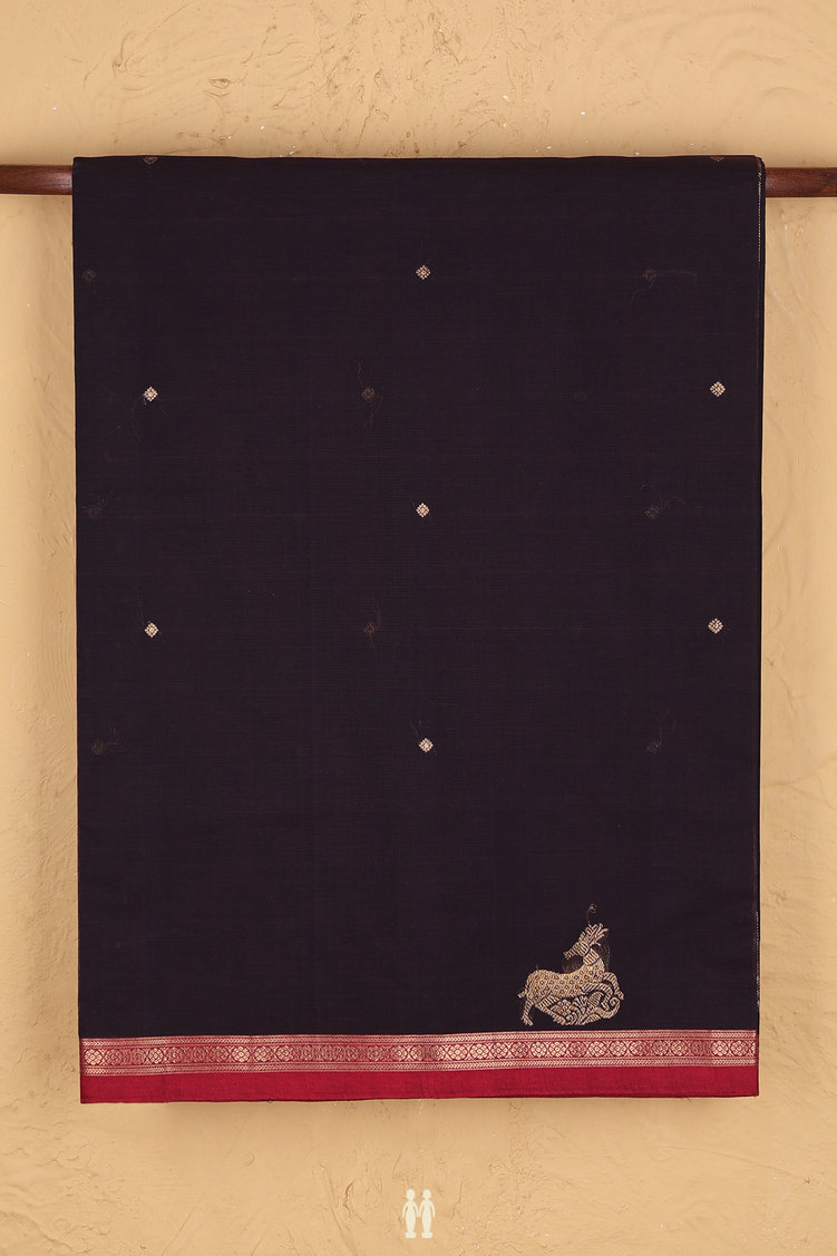 Coimbatore Cotton Saree In Dark Oak Brown With Zari Buttis