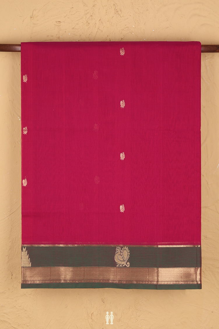 Coimbatore Cotton Saree In Deep Mulberry With Peacock Buttas