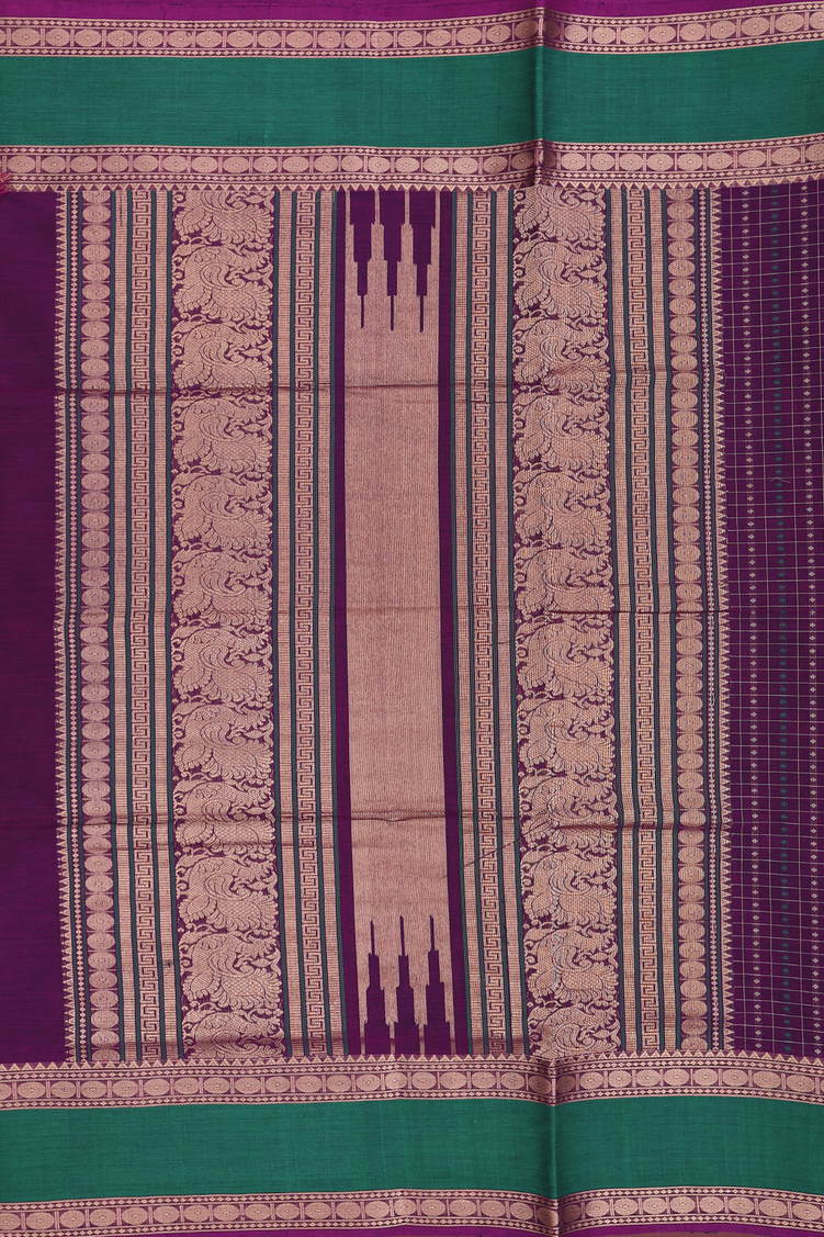 Coimbatore Cotton Saree In Grape Purple With Checks Design