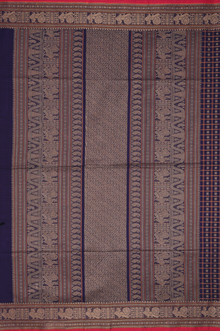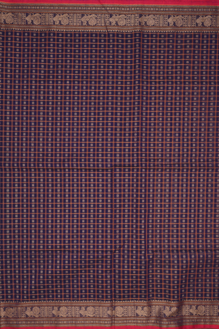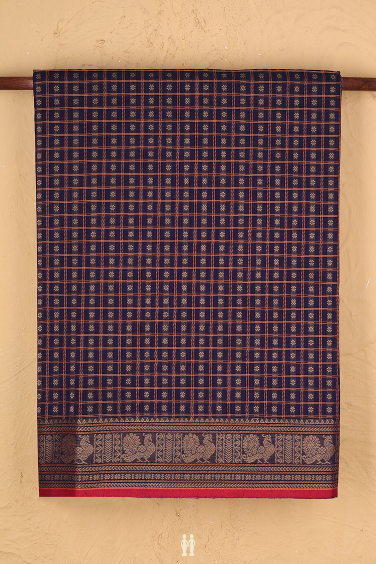 Coimbatore Cotton Saree In Navy Blue With Checks Design