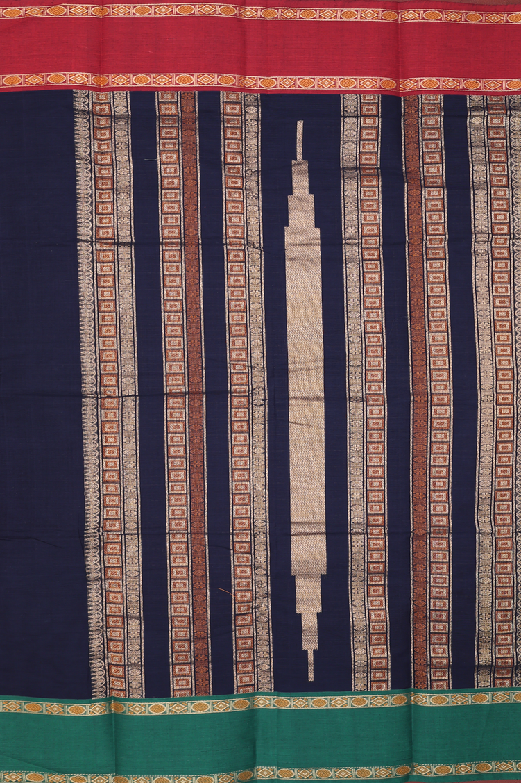 Coimbatore Cotton Saree In Navy Blue With Threadwork Design