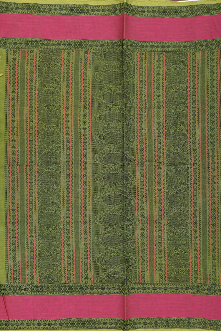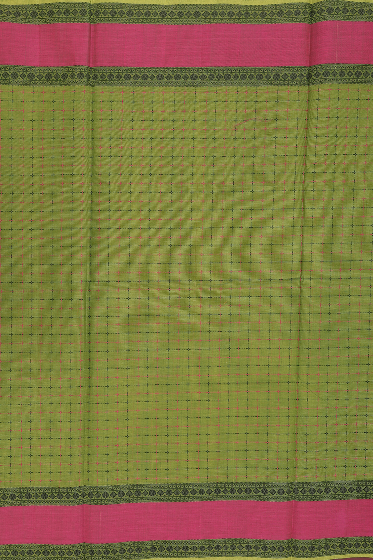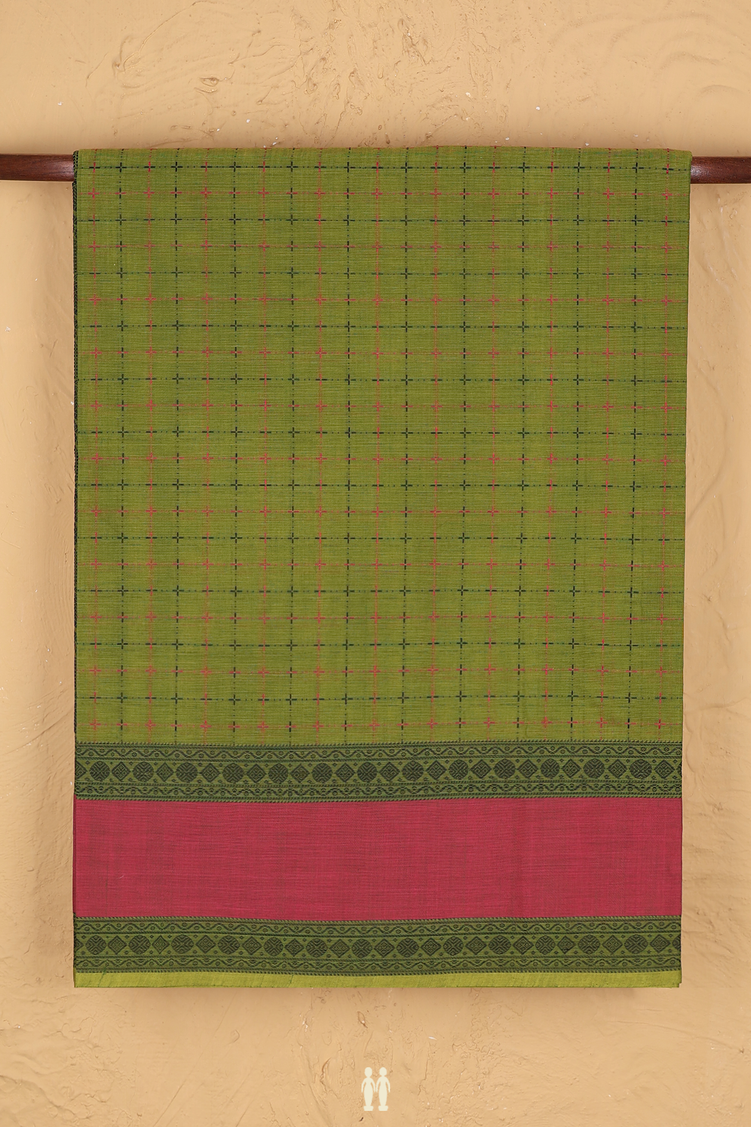 Coimbatore Cotton Saree In Olive Green With Checks Design
