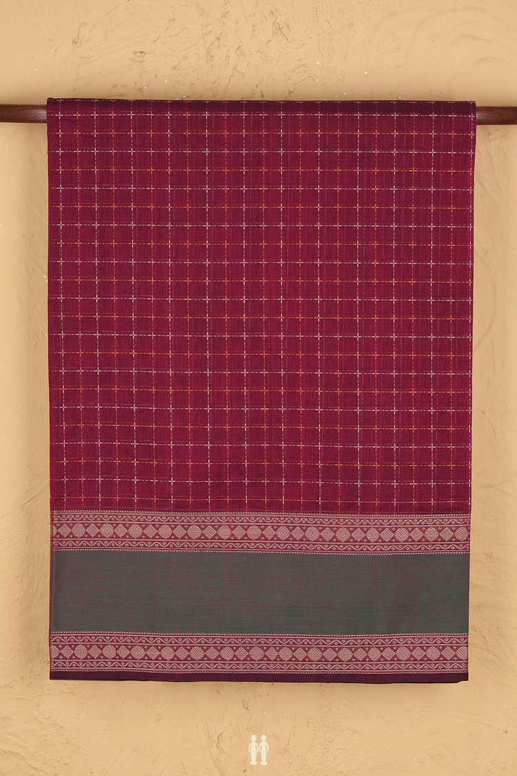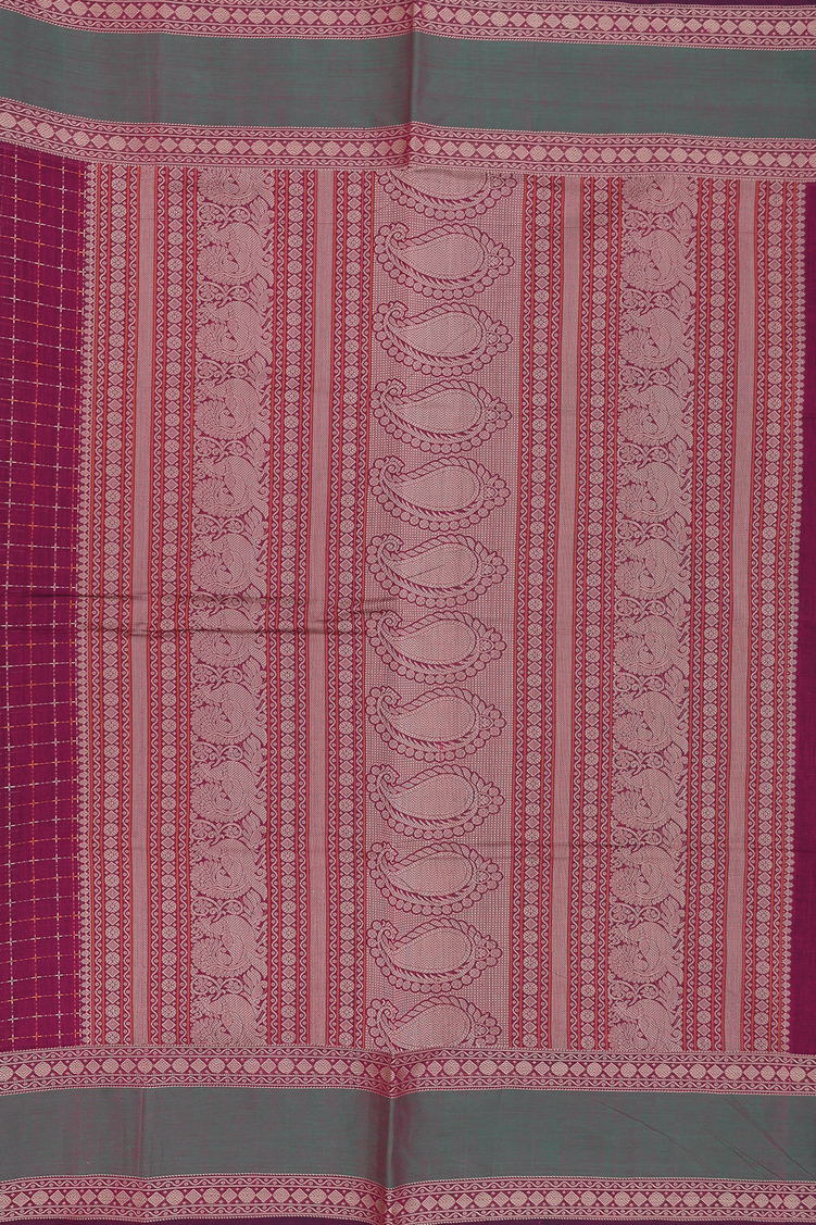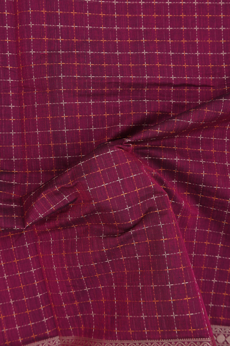 Coimbatore Cotton Saree In Plum Purple With Checks Design