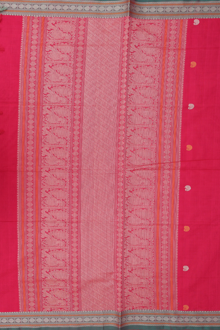 Coimbatore Cotton Saree In Rani Pink With Peacock Buttas