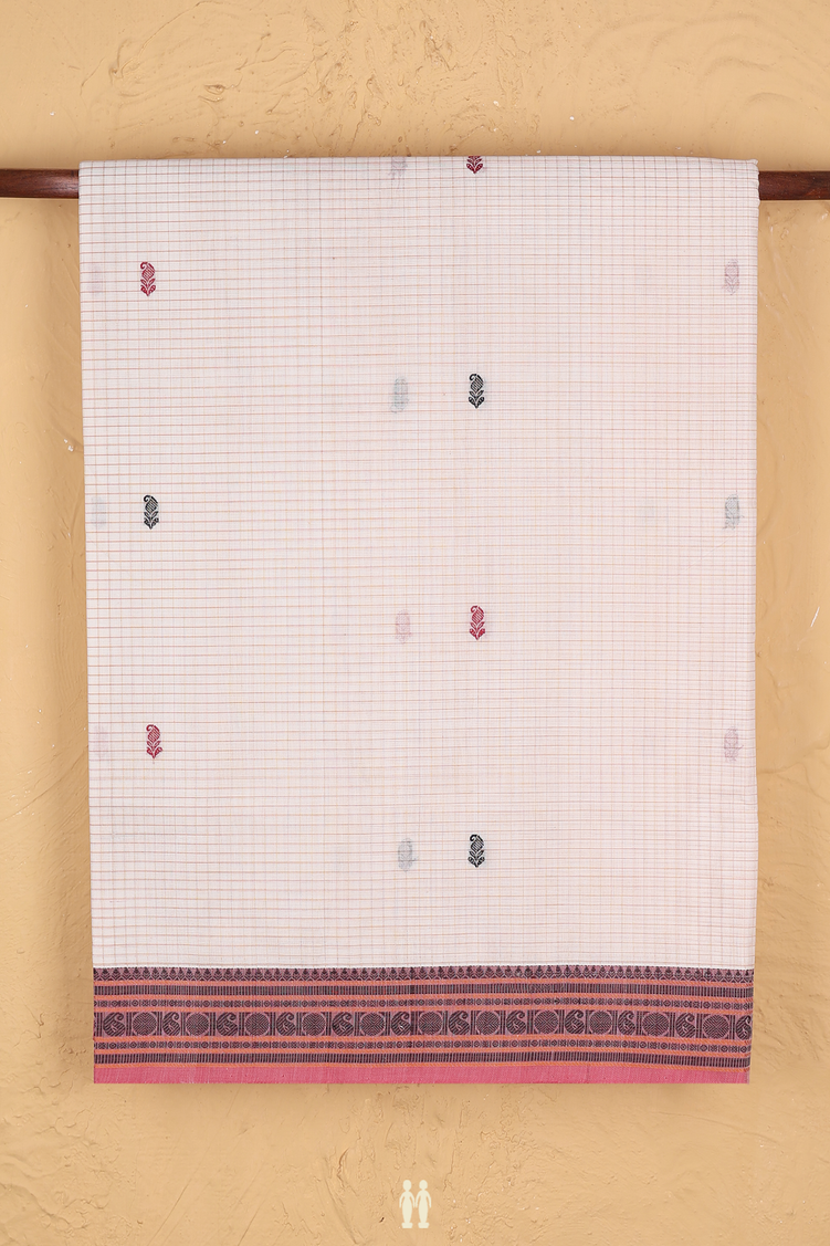Coimbatore Cotton Saree In White With Checks Design