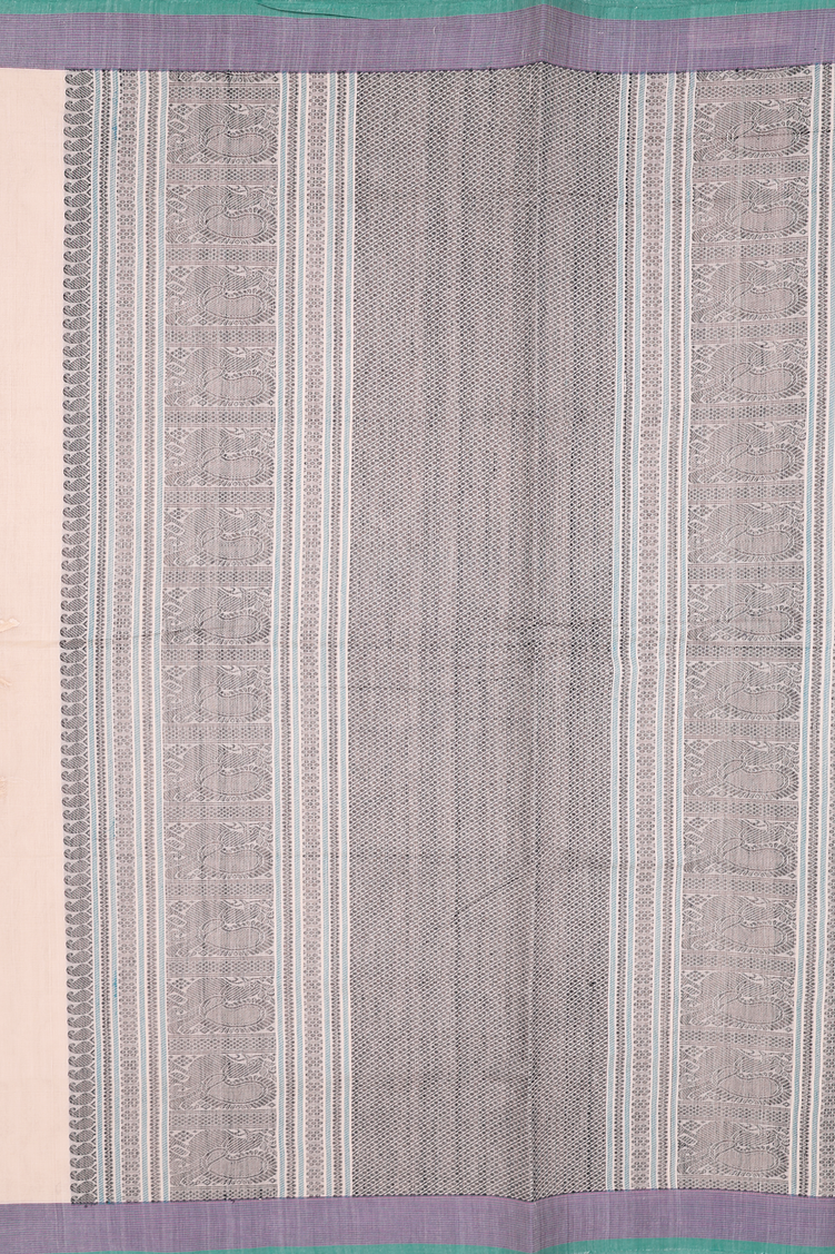 Experience timeless elegance with this coimbatore cotton saree in a refined pastel brown shade, adorned with delicate threadwork buttis. Crafted from breathable cotton, it offers comfort while maintaining a graceful silhouette. The subtle threadwork adds a touch of artistry, making it an ideal choice for both casual and formal occasions where understated sophistication is desired.