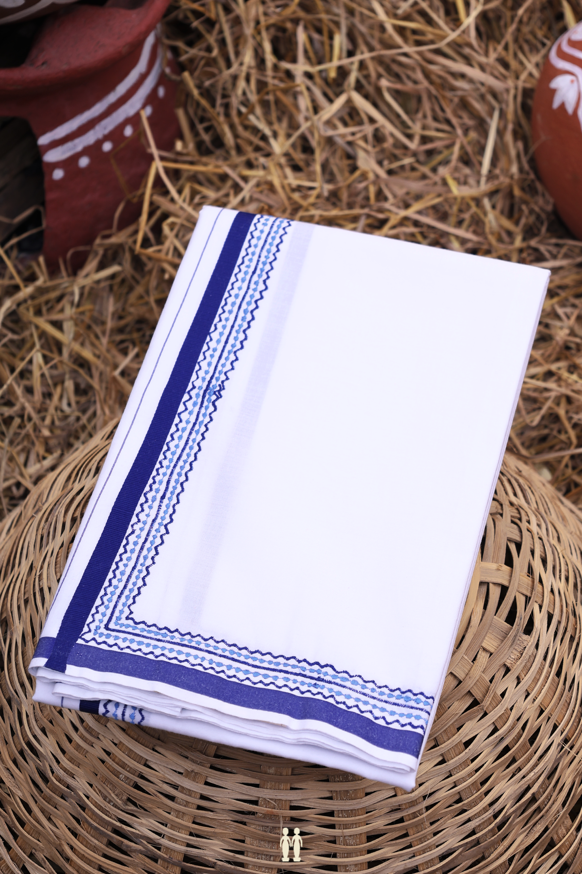 Elevate your traditional wardrobe with this refined white cotton dhoti, distinguished by its striking contrast border. Crafted from premium cotton for breathability and comfort, this timeless piece seamlessly blends heritage elegance with contemporary sophistication. The carefully designed contrast detailing adds visual depth while maintaining the garment's classic silhouette. Perfect for festivals, formal occasions, or everyday wear, this dhoti offers versatility without compromising on style. An essential addition for those who appreciate authentic Indian craftsmanship and understated luxury.
