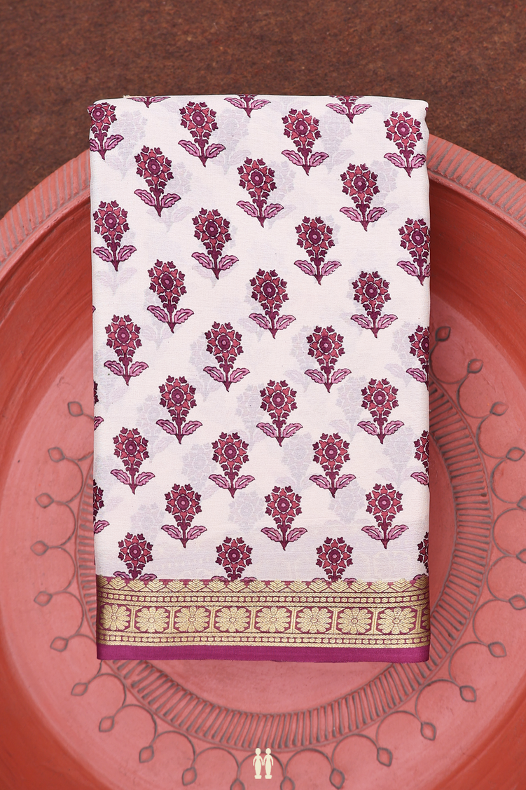 Elevate your elegance with this ivory crepe saree adorned with delicate floral buttas. Its smooth, flowing fabric offers graceful draping, while the subtle floral motifs add a touch of timeless refinement. Perfect for formal occasions or understated celebrations, this saree balances simplicity with sophisticated charm.