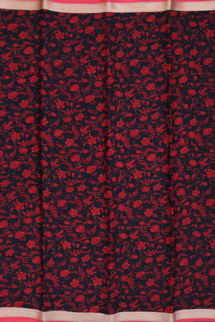 Elevate your wardrobe with this sophisticated crepe saree, a timeless piece that seamlessly blends elegance with contemporary style. The rich black fabric provides a versatile canvas, while delicate floral motifs add refined visual interest and dimension. Crafted from quality crepe material, this saree drapes beautifully and offers comfortable wear throughout the day. Perfect for festive occasions, professional events, or refined casual gatherings, this design celebrates traditional craftsmanship with understated luxury. The intricate floral patterns showcase meticulous attention to detail, making it an investment piece that complements various skin tones and personal styles.