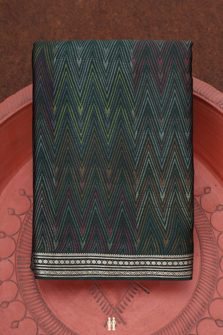 Indulge in luxury with our crepe saree in forest green. The sophisticated chevron design adds a touch of exclusivity to this elegant piece. Made from high-quality crepe fabric, this saree drapes beautifully and is sure to make a statement at any occasion. Elevate your wardrobe with this premium product.