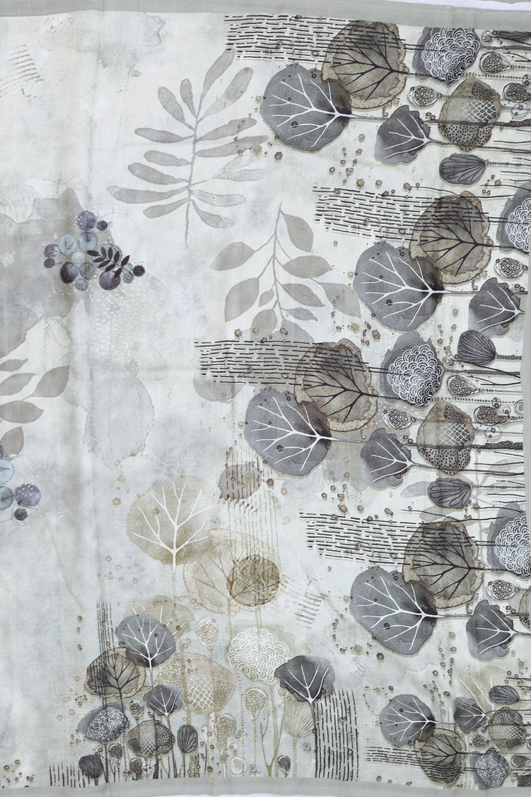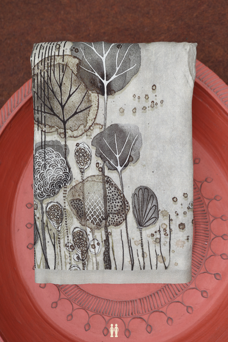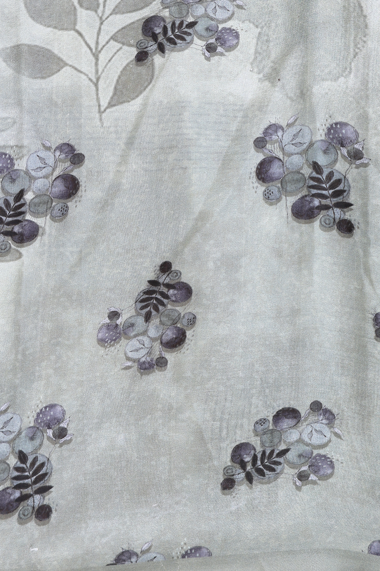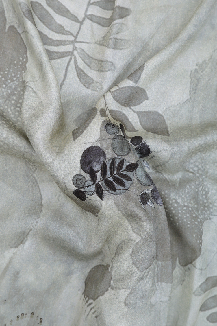 Crepe Saree In Greenish Grey With Printed Design