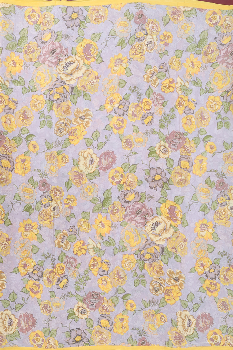 Crepe Saree In Greyish Green With Floral Design