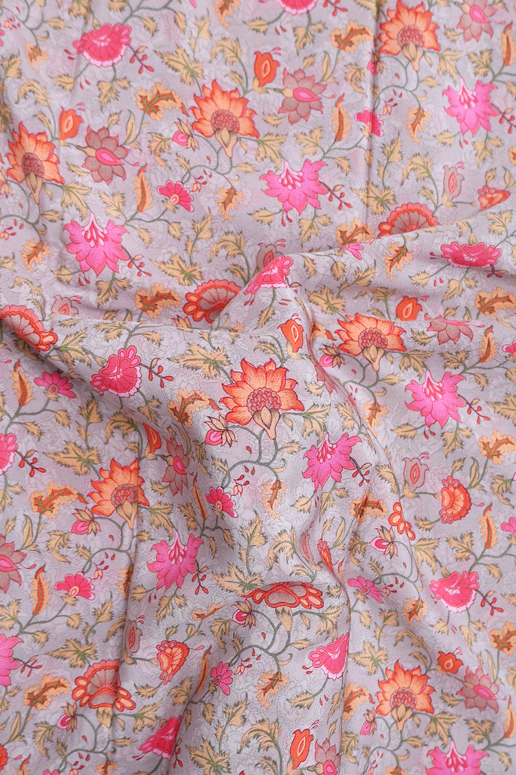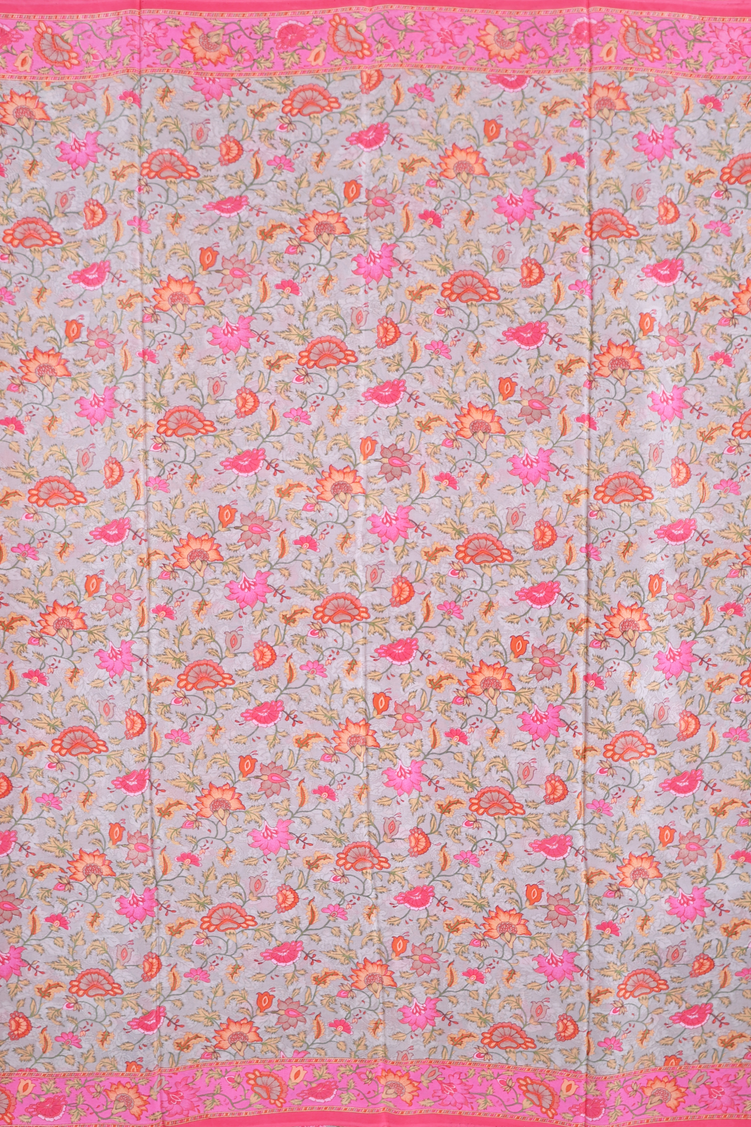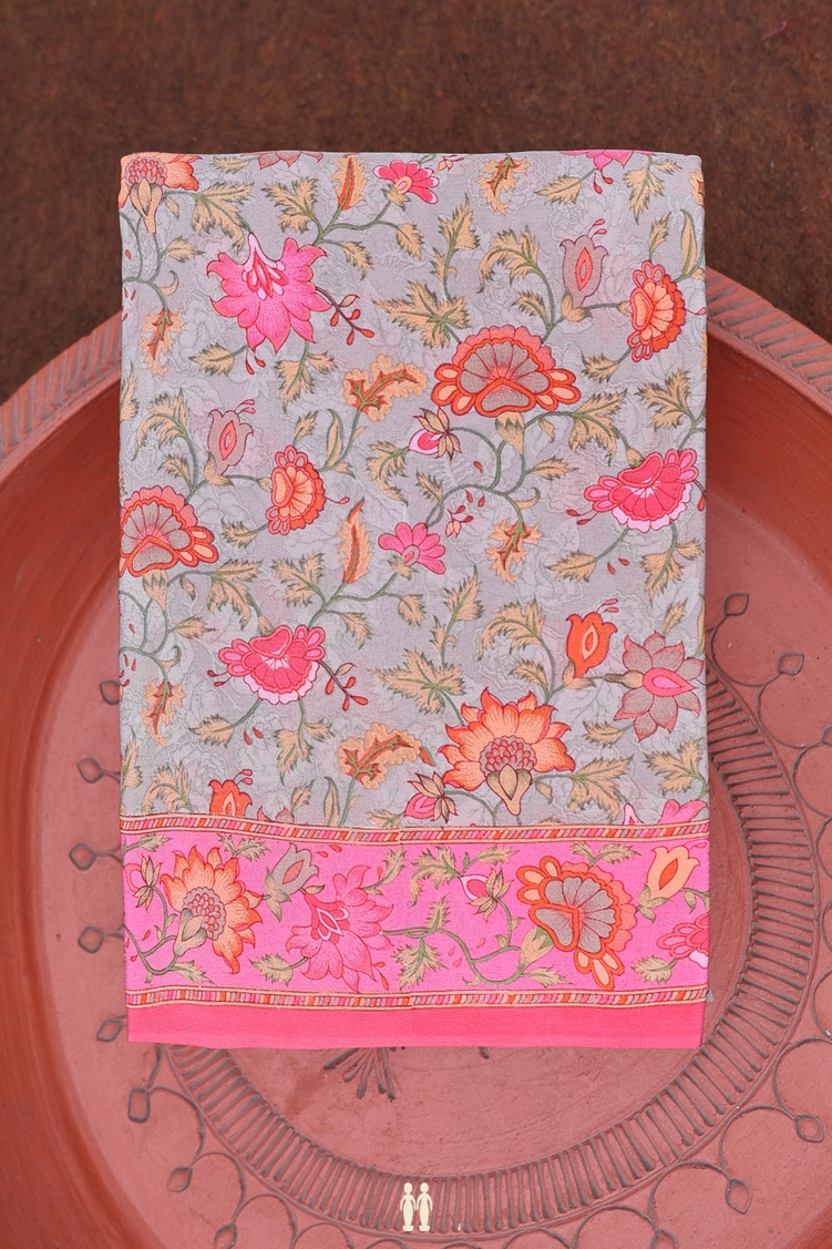 Crepe Saree In Light Sage Green With Floral Printed Design