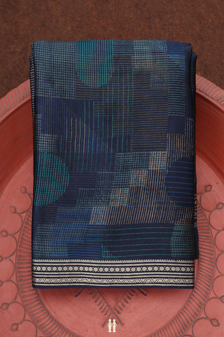 Crepe Saree In Navy Blue With Allover Printed Design
