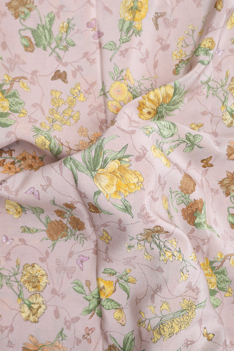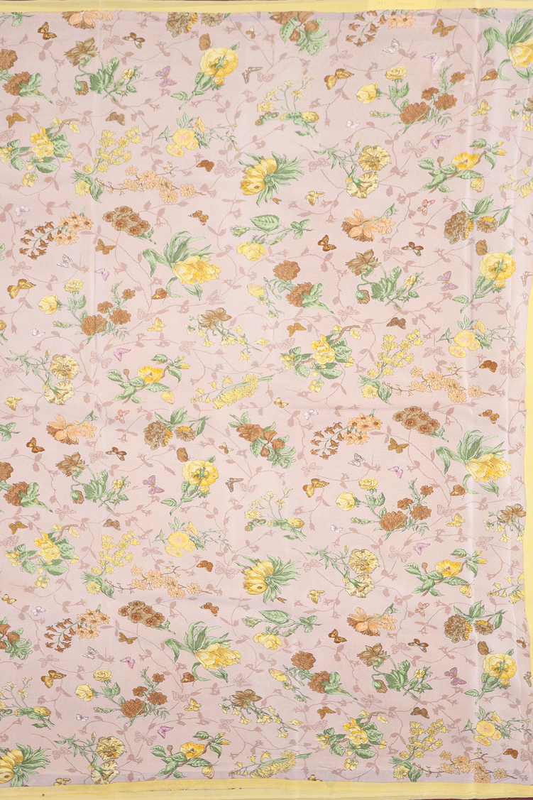 Crepe Saree In Pastel Brown With Floral Printed Design