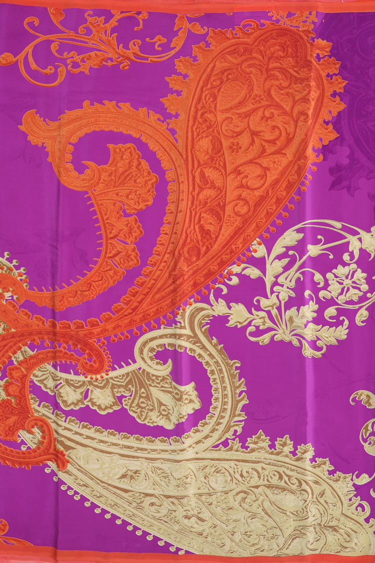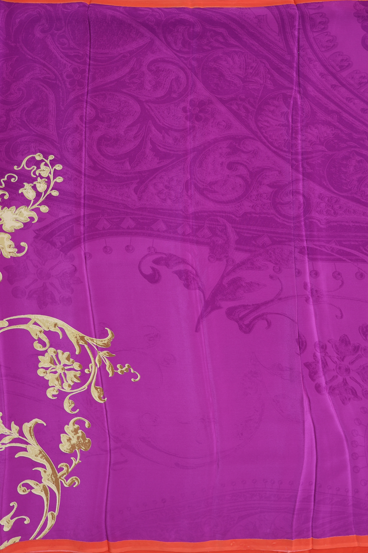 Elevate your ethnic wardrobe with this exquisite crepe saree in rich purple, adorned with an intricate printed design with vermillion red border and blouse. The lightweight crepe fabric drapes beautifully, offering comfort without compromising on elegance. Perfect for festive occasions, celebrations, or refined everyday wear, this saree combines traditional aesthetics with contemporary styling. The sophisticated purple hue pairs effortlessly with classic jewelry and accessories, making it a versatile addition to any collection. Embrace timeless grace with this thoughtfully crafted piece.