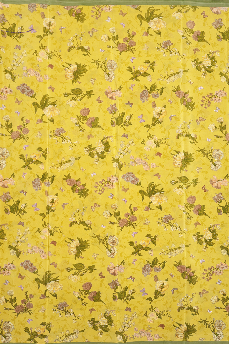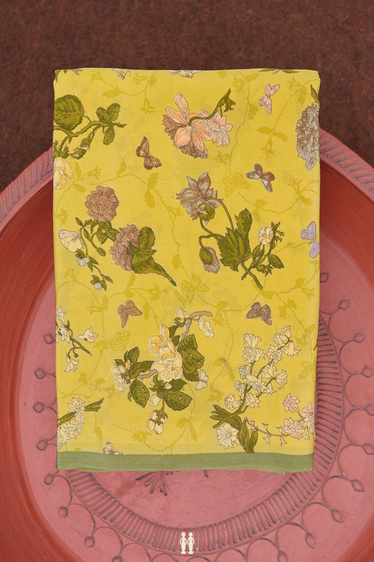 Crepe Saree In Royal Yellow With Floral Design