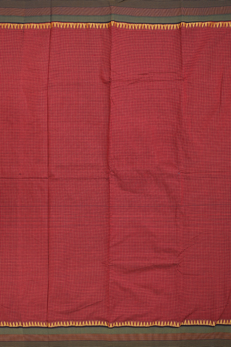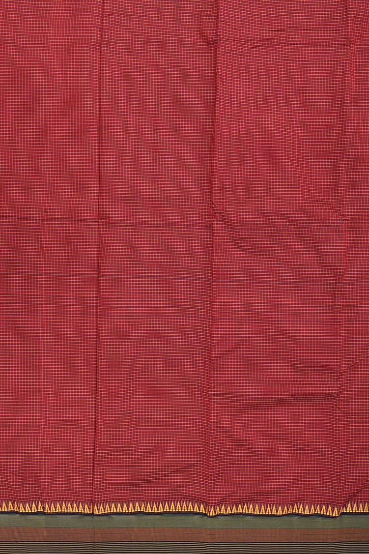 Dharwad Cotton Saree In Brick Red With Checks Design