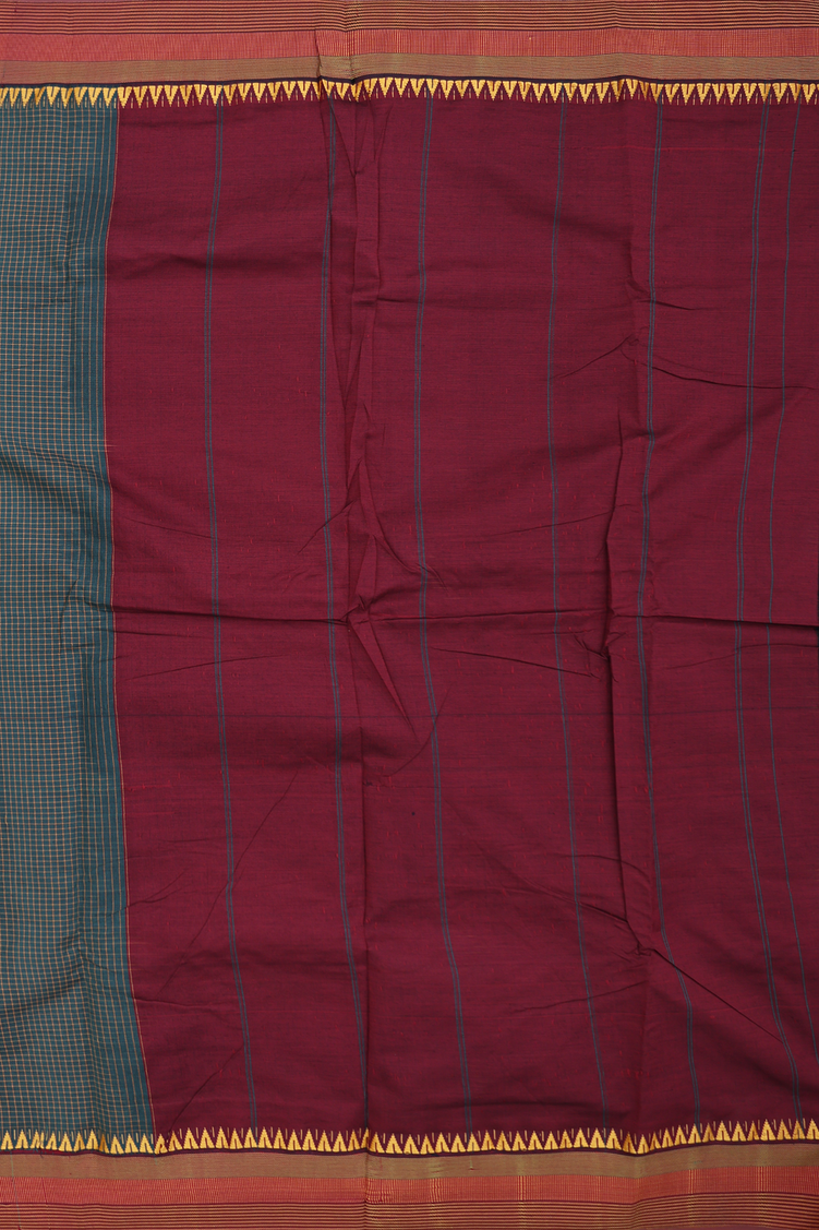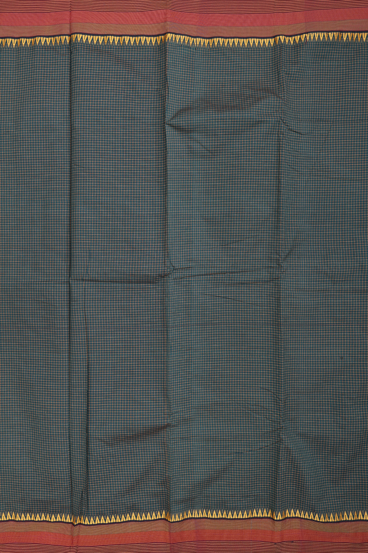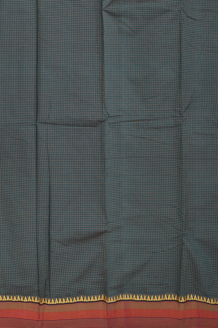 Dharwad Cotton Saree In Dark Green With Checks Design