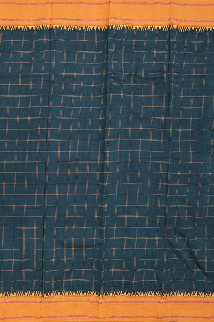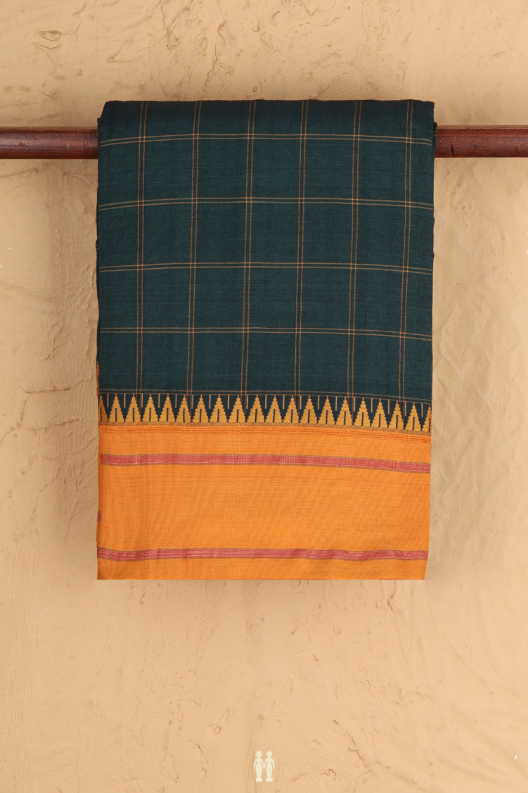 Dharwad Cotton Saree In Dark Green With Checks Design