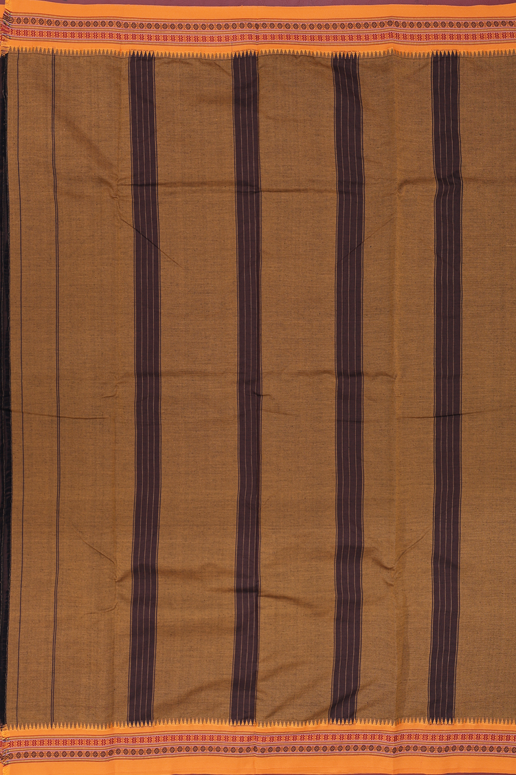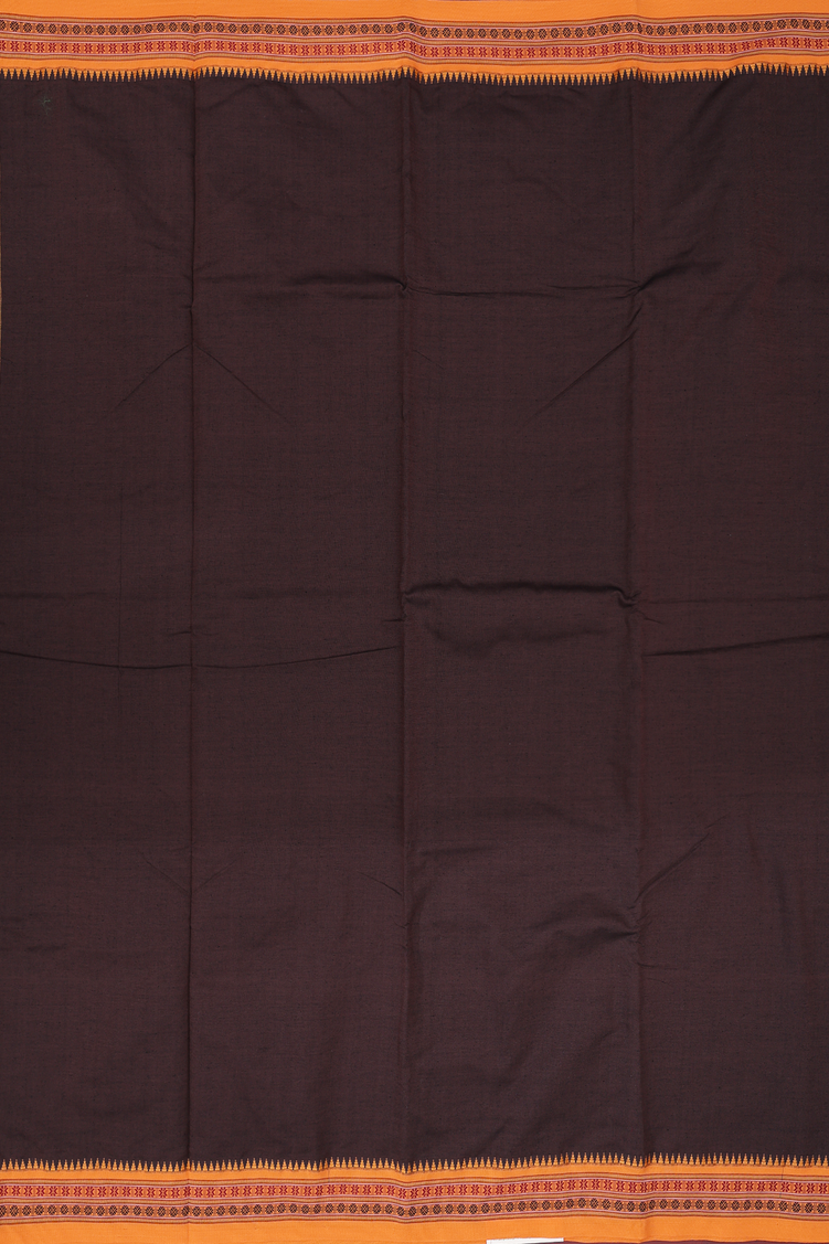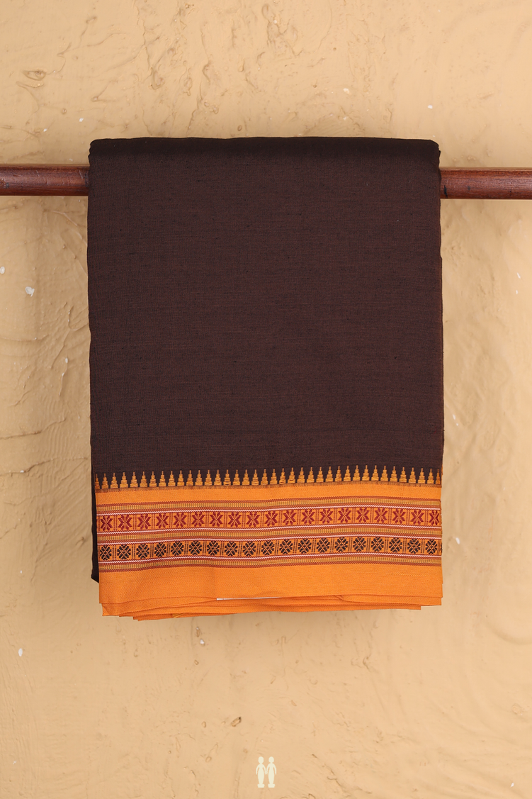 Dharwad Cotton Saree In Dark Oak Brown With Contrast Border