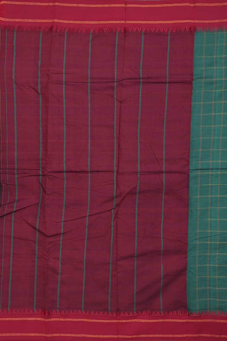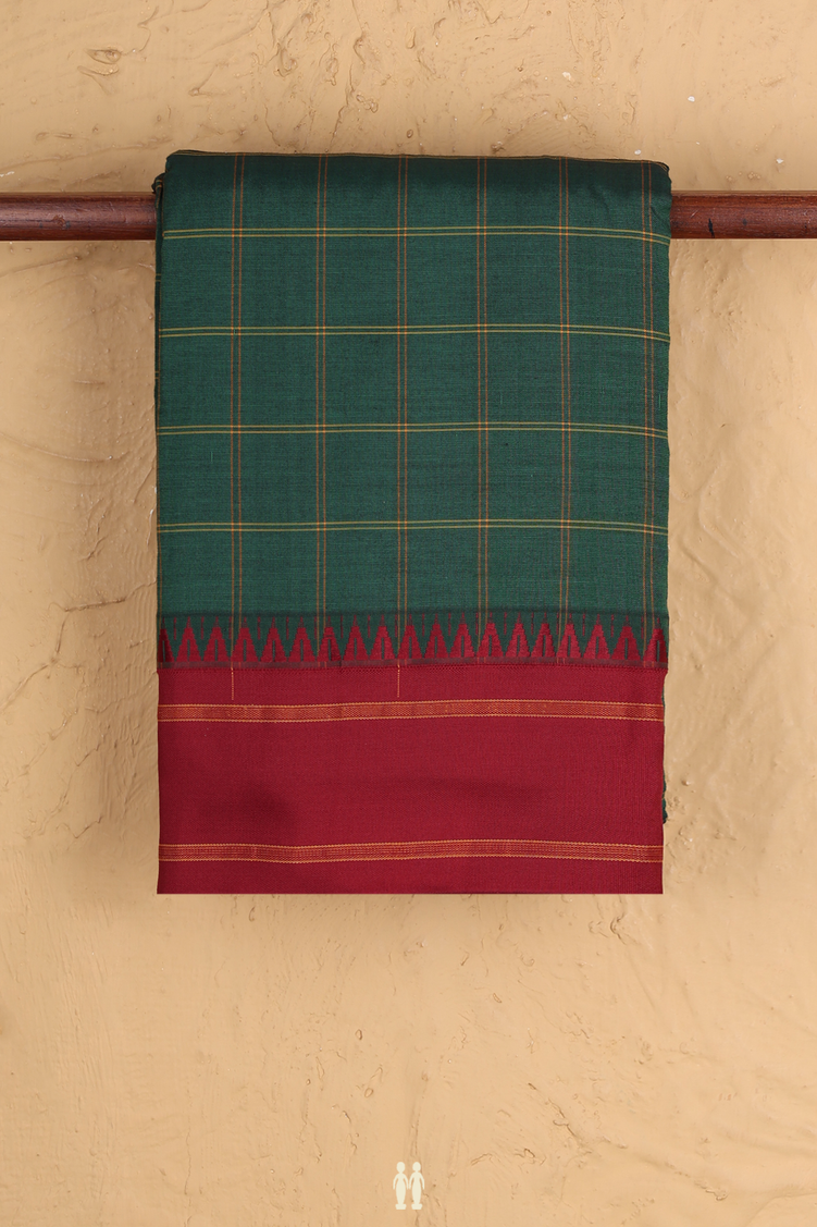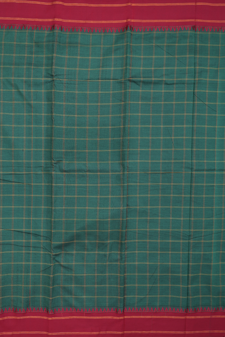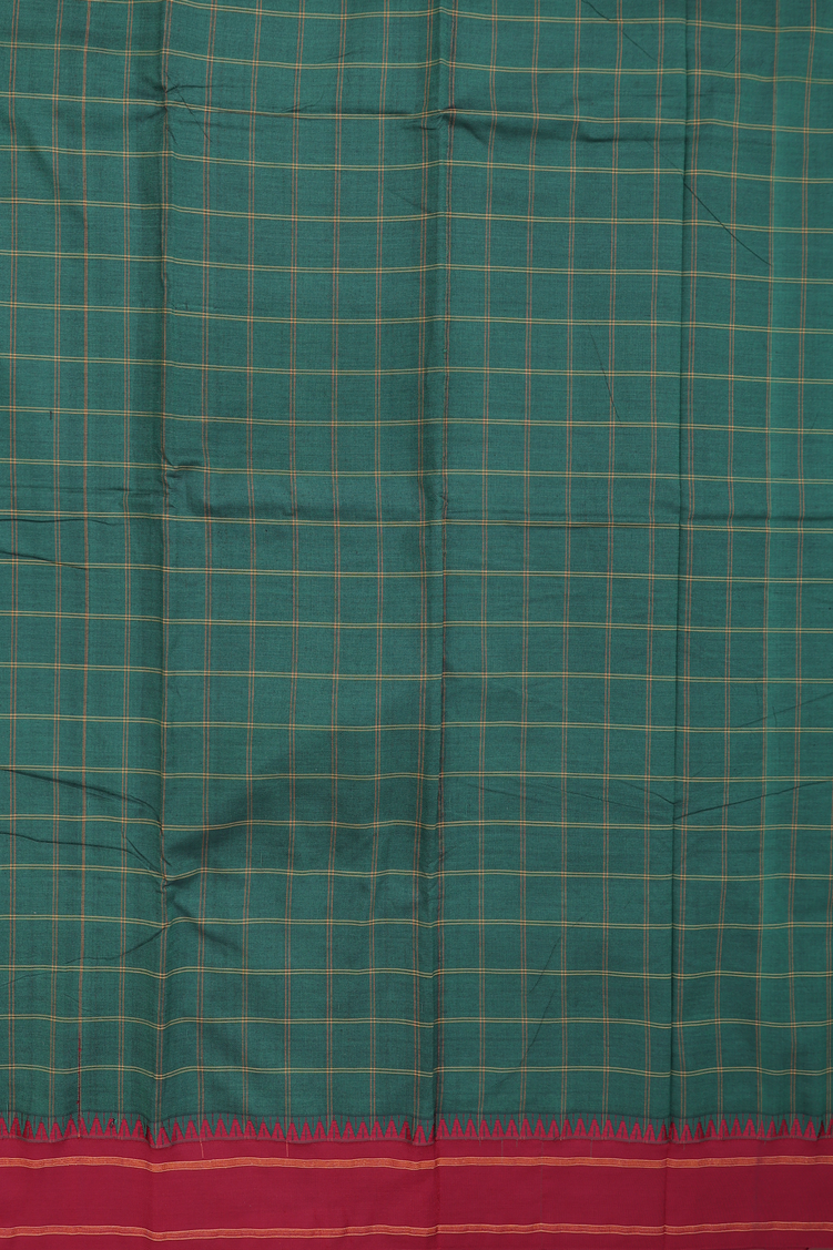 Dharwad Cotton Saree In Forest Green With Checks Design