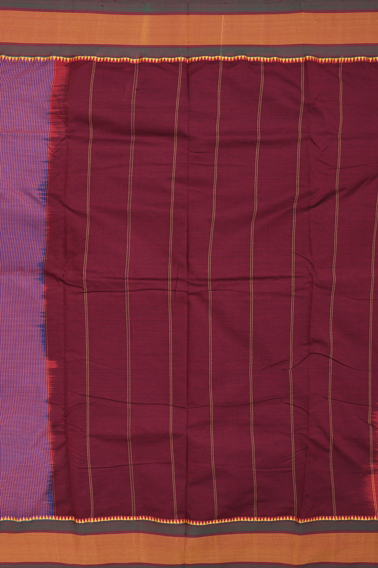 Dharwad Cotton Saree In Grape Purple With Checks Design